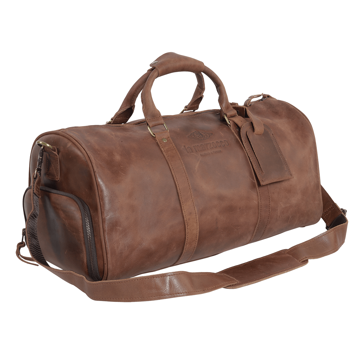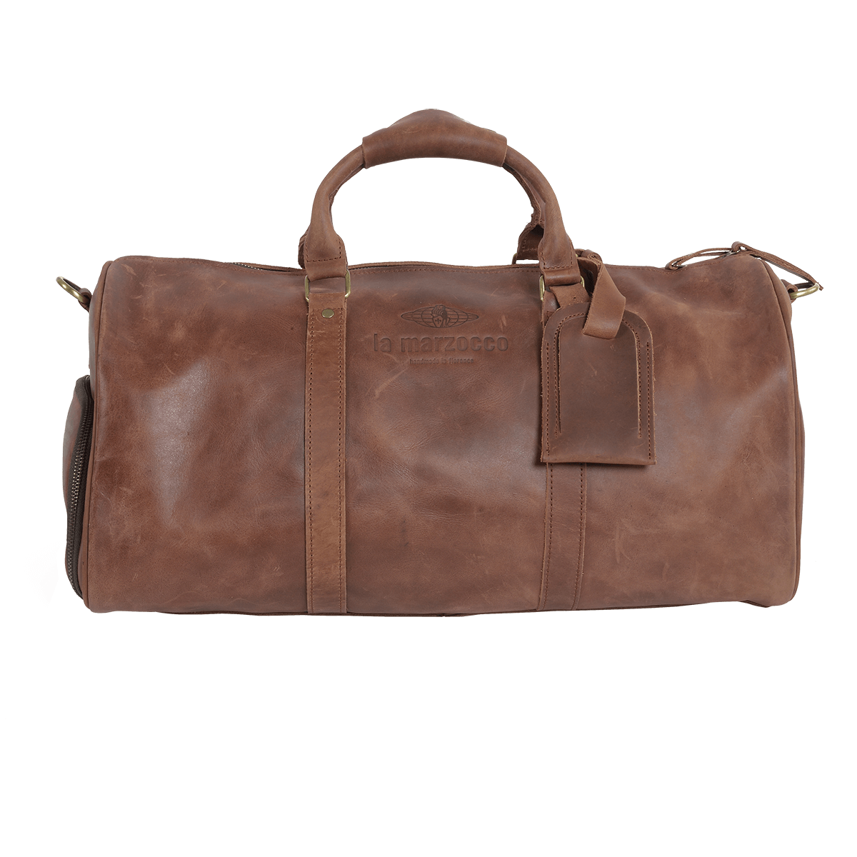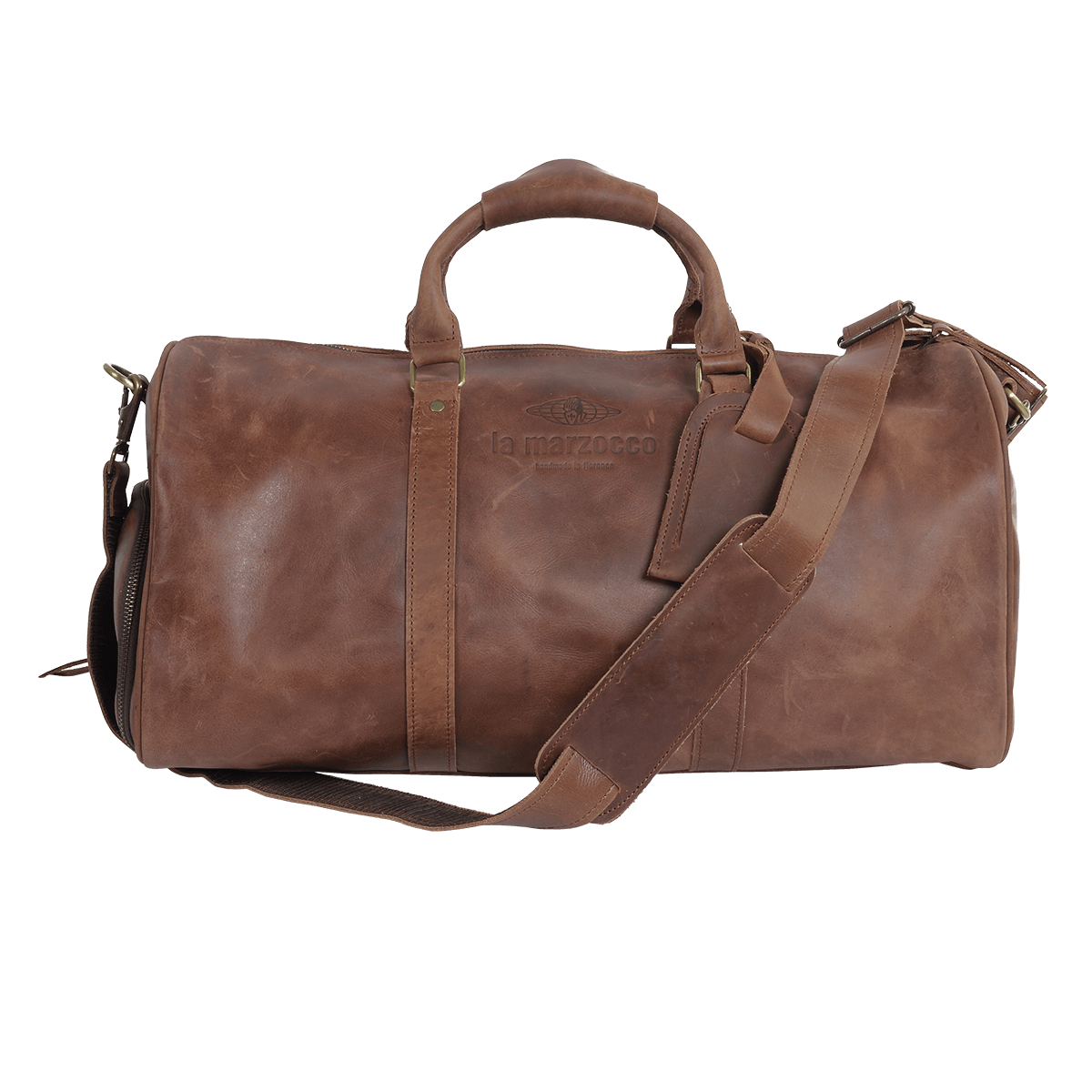 La bolsa de viaje de cuero La Marzocco es el accesorio ideal para llevar tus imprescindibles con elegancia. Su diseño incluye una correa ajustable y desmontable para mayor comodidad, además de dos bolsillos internos que garantizan un viaje organizado y con estilo.