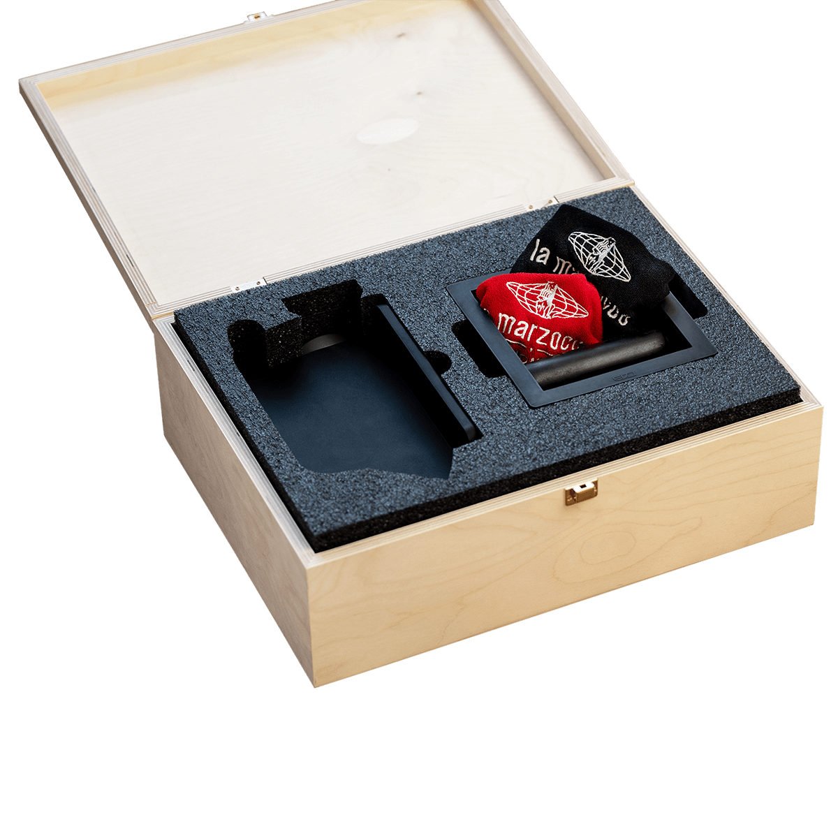 Caja Deluxe de Madera: Este precioso estuche de contrachapado de abedul grabado con el león de La Marzocco no solo es funcional, sino que aporta un toque de distinción. Perfecta para organizar y proteger tus herramientas de barista. Además, es ideal como opción de regalo para baristas o amantes del café.