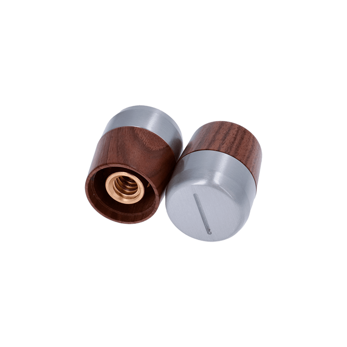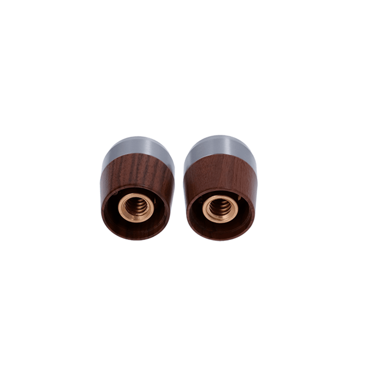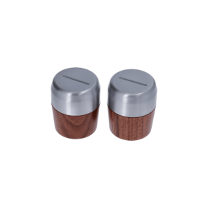 Conjunto de pomos de vapor y agua caliente para la Linea Mini en madera de nogal y tapas de acero.