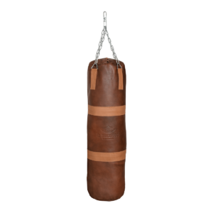 Saco de boxeo de cuero de inspiración vintage hecho a mano. Diseñado por Modest Vintage Player, una empresa australiana compuesta por artesanos que han dedicado su vida a aprender el arte de crear productos deportivos y recreativos con cueros finos y maderas exóticas. Este exclusivo saco de boxeo de cuero en color marrón claro añade un toque de contraste contraste que aporta elegancia con los ribetes de cuero marrón oscuro. Está hecho para entrenamientos intensos, perfecto para cualquier gimnasio en casa o como artículo decorativo para tu cafetería o sala de exhibición.