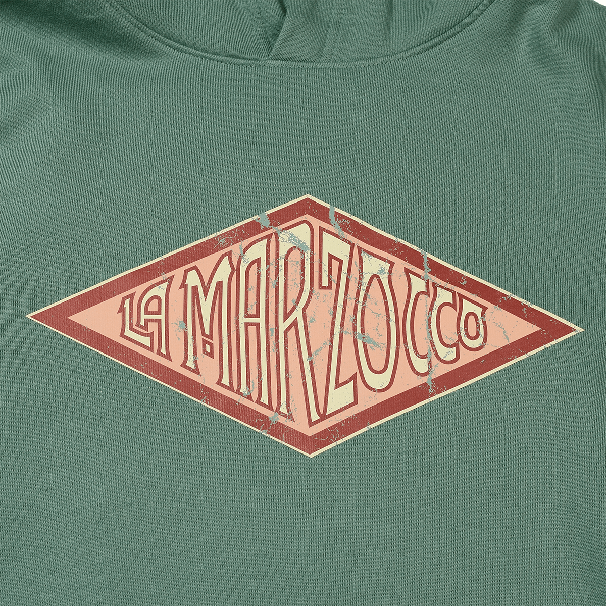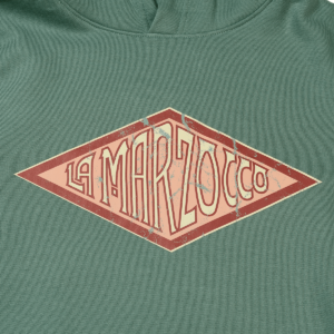 Esta sudadera con capucha evoca todas las vibraciones retro, con uno de los primeros logotipos de La Marzocco. Colores desgastados y un aspecto lavado, el logotipo es de los años ’30, la vibra es realmente noventera.