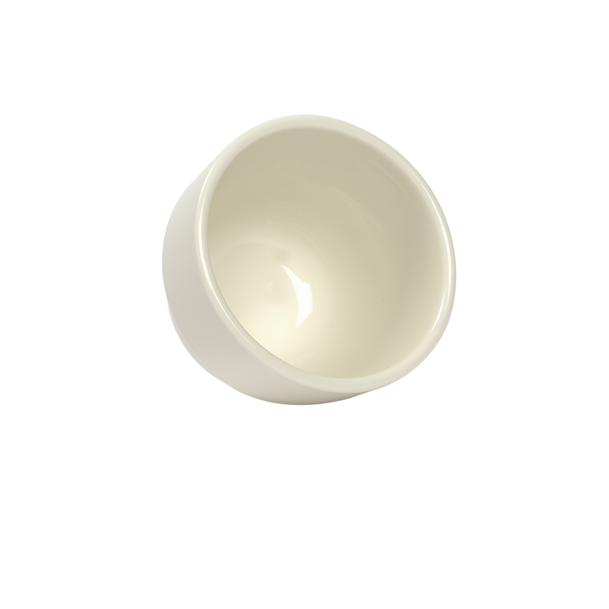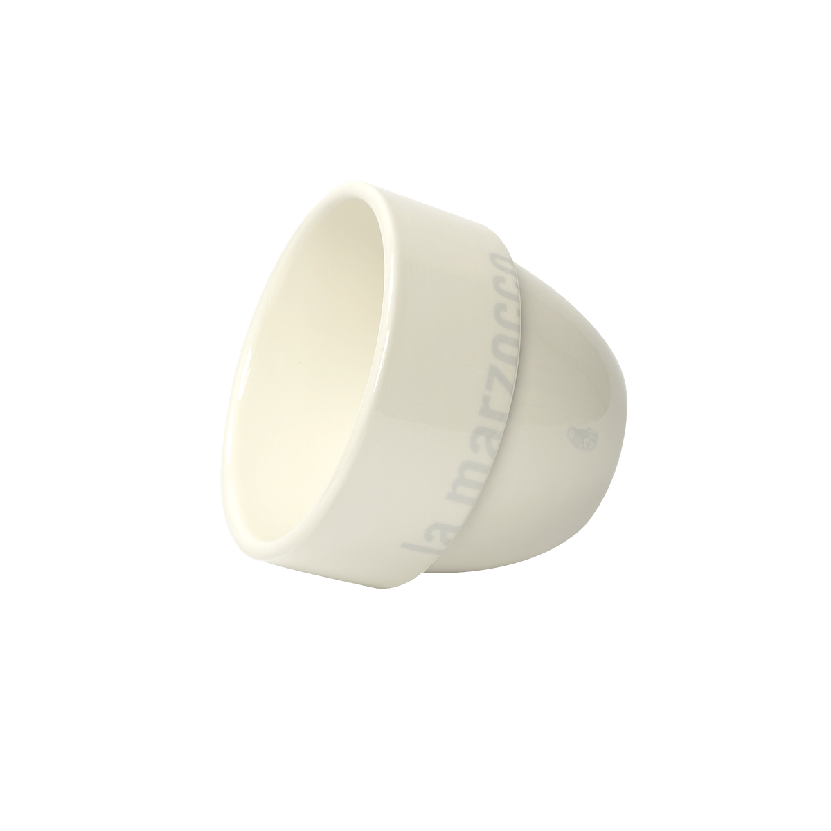 Taza de cata de porcelana de 210 ml de ACME en acabado blanco pulido. Tiene el grosor adecuado para una retención de temperatura equilibrada.